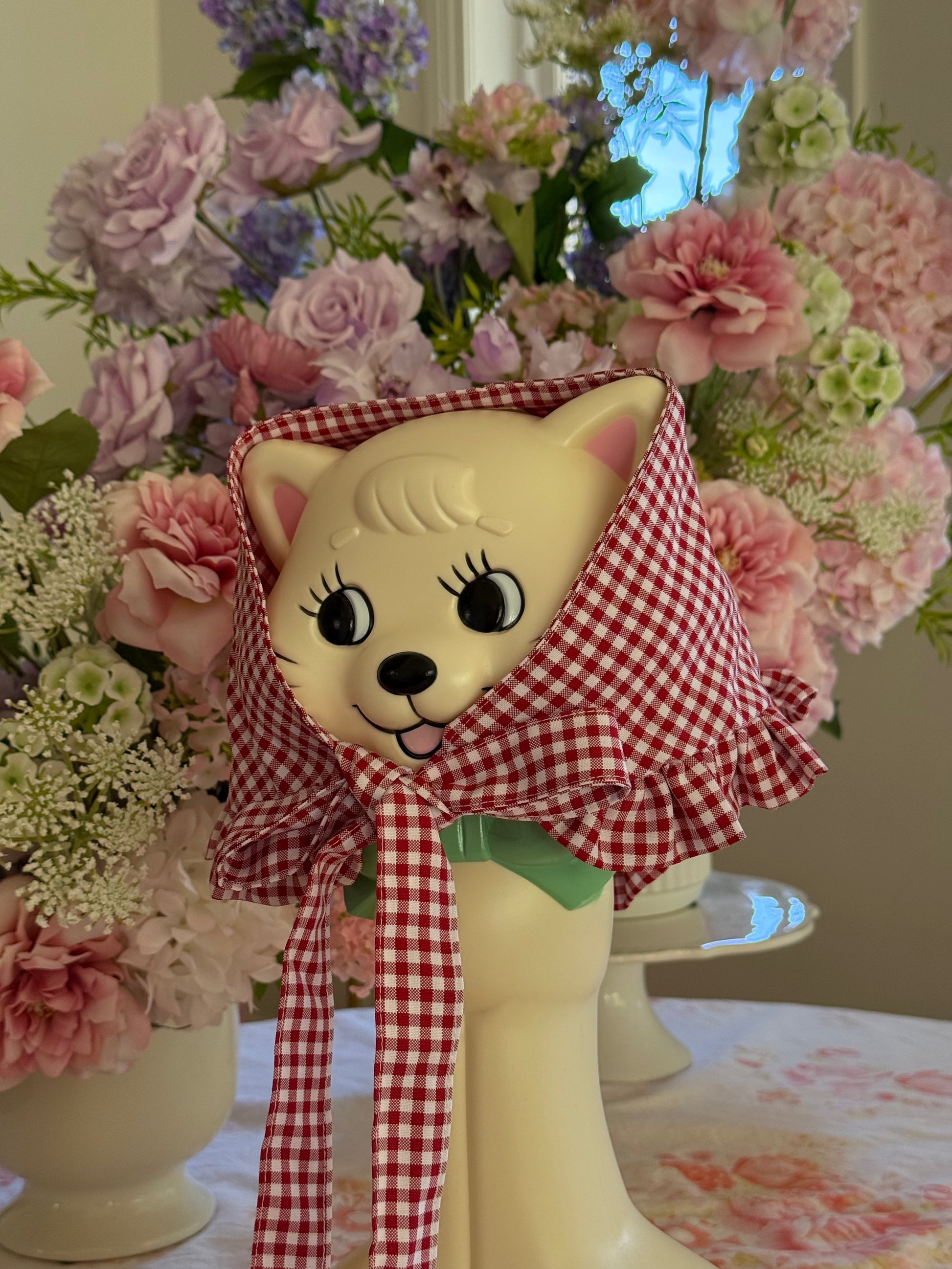 Babushka Scarf - Red Gingham Cotton x Poly